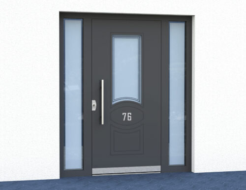 Hišna številka 76, iz nerjavečega jekla, 6495 - Zasteklitev obsvetlobe: peskan motiv na prozornem steklu